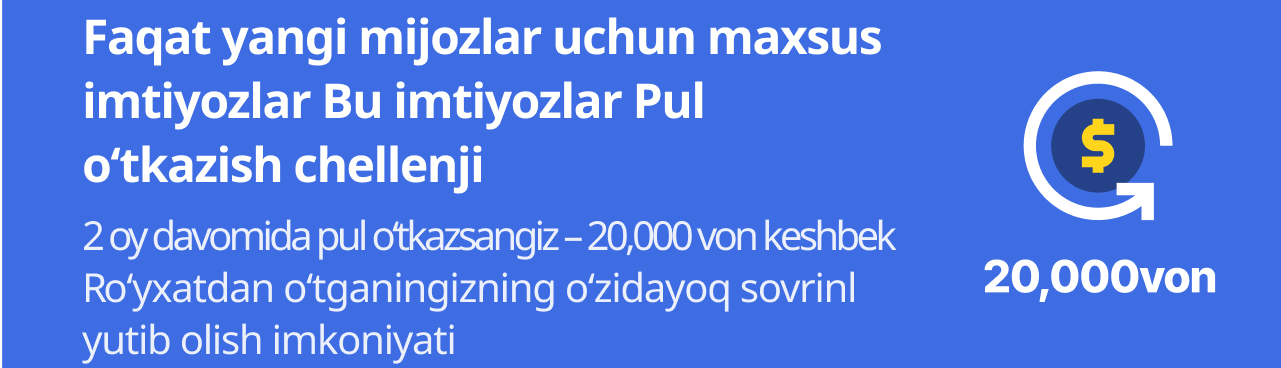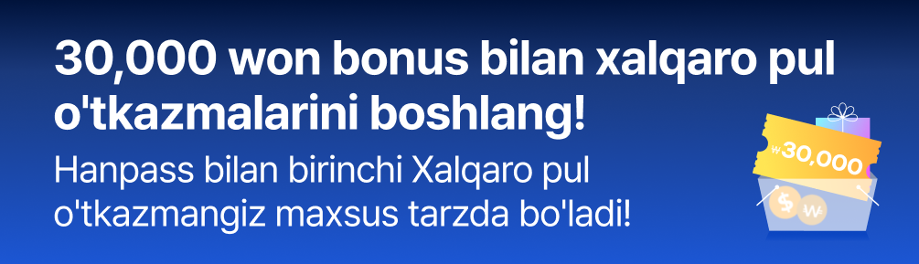 30,000 won bonus bilan xalqaro pul o'tkazmalarini boshlang!